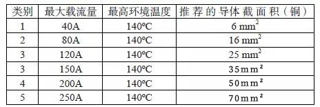 2.2.1 最大電流承載能力:該測試是為了確定線束在開始發生過度熱降解和/或具有超額電阻之前能夠承受的最大試驗電流。實驗的合格標志是在規定的載流范圍內,整個連接系統內任何一點的溫升不可超過55度或不可超出產品的使用極限。目前不同規格線束將依據線纜截面積進行載流劃分,具體可參看下表2: