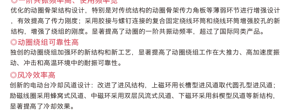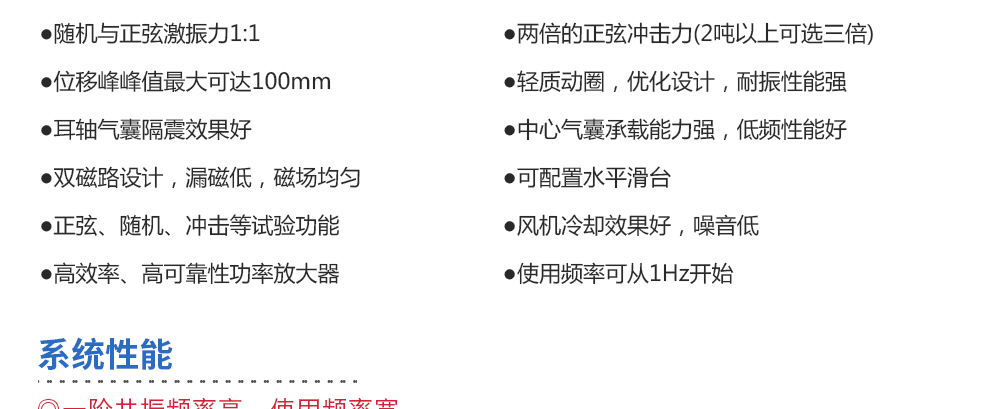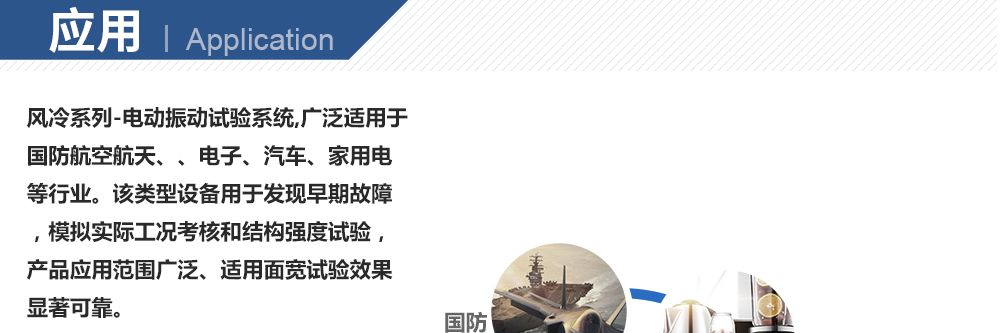 用途:風冷電動振動系統,推力大,承載能力強,冷卻效率高。可分別完成三軸向的正弦振動試驗、寬帶隨機振動試驗以及經典(半正弦、梯形、后峰齒)脈沖和沖擊響應譜試驗。